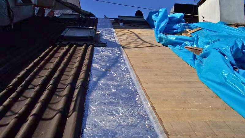 יישום בידוד רפלקטיבי בגגות במדריד עם פתרונות פולינום יריעת בידוד רפלקטיבית פרוסה מתחת ללוחות גג קיימים במבנה במדריד