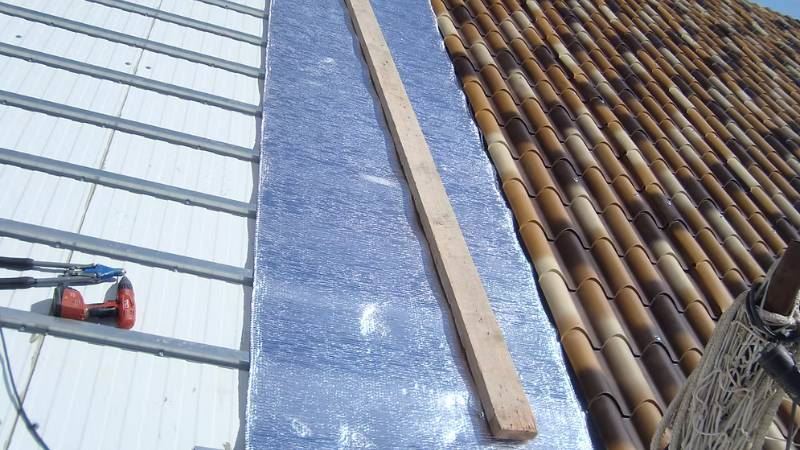- פריסה של יריעת בידוד רפלקטיבי על גבי תשתית המתכת