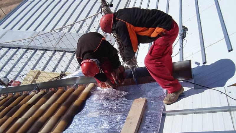 העבודה בוצעה על גג San Bodega בנוי מתכת ורעפים. צוות ההתקנה השתמש בשכבת בידוד רפלקטיבית מבית פולינום ופרס אותה בהתאם לצורת הגג ולשיפועים הקיימים. לאחר ההתאמות הנדרשות סביב נקודות החיבור והקצה, הוחזרו הרעפים ובוצעה בדיקה לוודא כיסוי אחיד ומסודר. פתרון זה הוא דוגמה ליישום בשטח של פתרונות בידוד תרמי לגגות מבית פולינום.